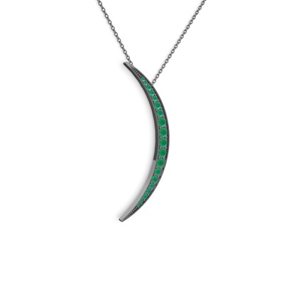 Kök zümrüt 925 ayar siyah rodyum kaplama gümüş kolye (40 cm gümüş rolo zincir)