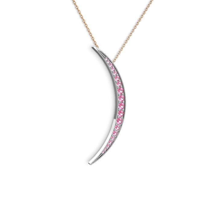 Pembe kuvars 14 ayar beyaz altın kolye (40 cm gümüş rolo zincir)