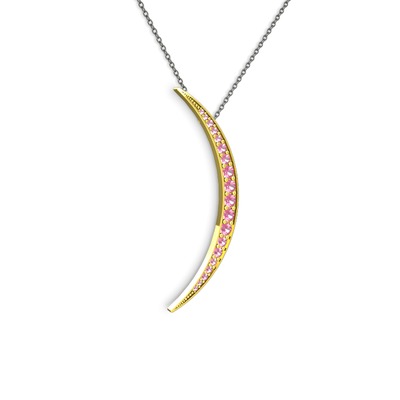 Pembe kuvars 925 ayar altın kaplama gümüş kolye (40 cm gümüş rolo zincir)