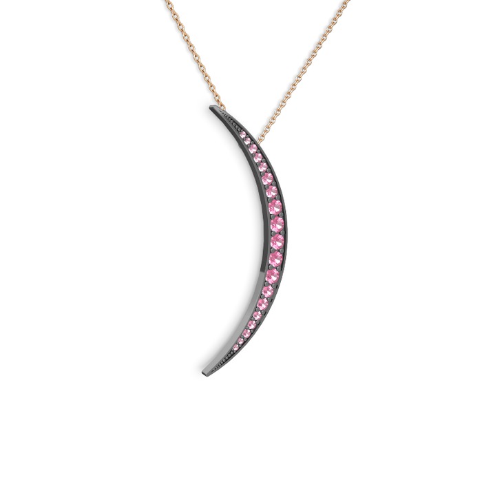 Pembe kuvars 925 ayar siyah rodyum kaplama gümüş kolye (40 cm rose altın rolo zincir)