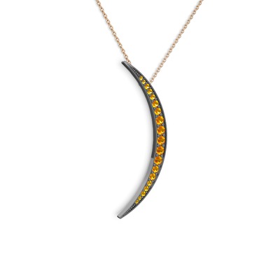 Sitrin 925 ayar siyah rodyum kaplama gümüş kolye (40 cm rose altın rolo zincir)