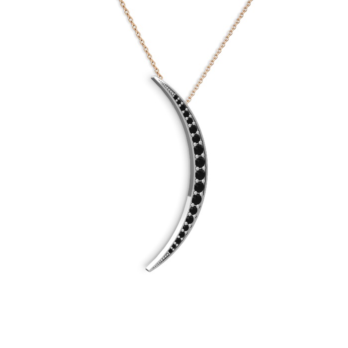 Siyah zirkon 14 ayar beyaz altın kolye (40 cm rose altın rolo zincir)