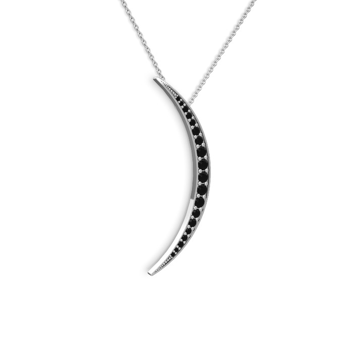 Siyah zirkon 925 ayar gümüş kolye (40 cm beyaz altın rolo zincir)