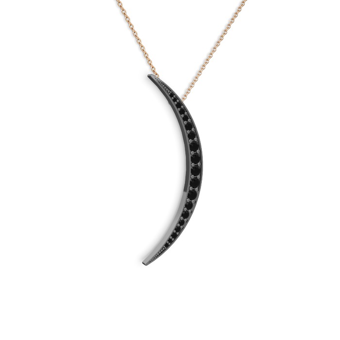 Siyah zirkon 925 ayar siyah rodyum kaplama gümüş kolye (40 cm rose altın rolo zincir)