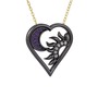 Ametist ve swarovski 925 ayar siyah rodyum kaplama gümüş kolye (40 cm altın rolo zincir)