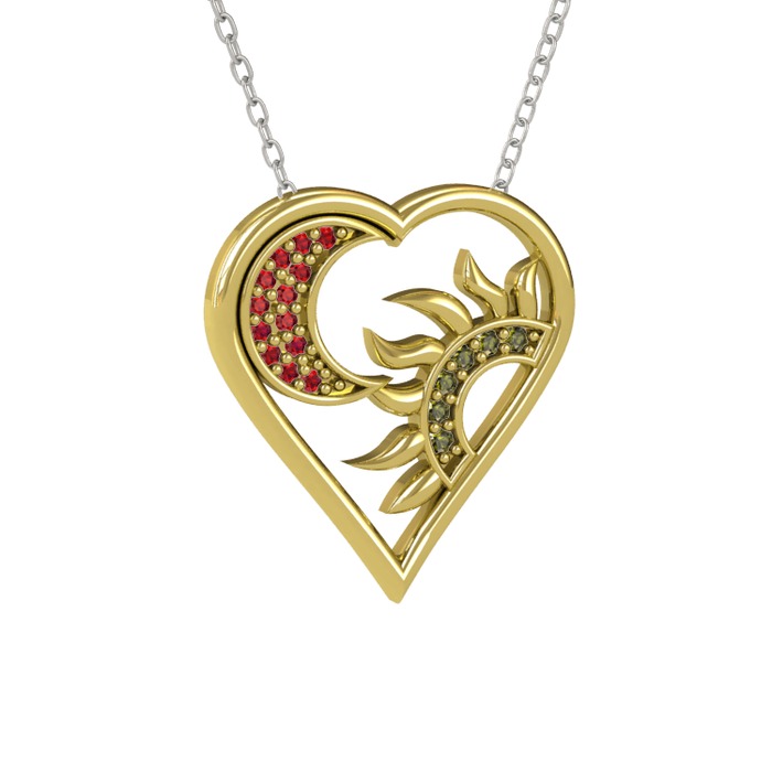 Işığın en büyük hakimi olan Ay ve Güneş’den esinlenerek tasarladığımız Ay ve Güneş Kalp Kolye ile sıradanlıktan uzak etkiniz herkes tarafından fark edilecek. Detaylı Bilgi