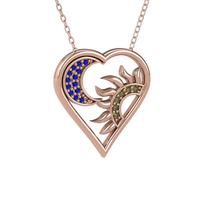 Lab safir ve peridot 925 ayar rose altın kaplama gümüş kolye (40 cm rose altın rolo zincir)