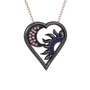 Pembe kuvars ve lab safir 925 ayar siyah rodyum kaplama gümüş kolye (40 cm rose altın rolo zincir)