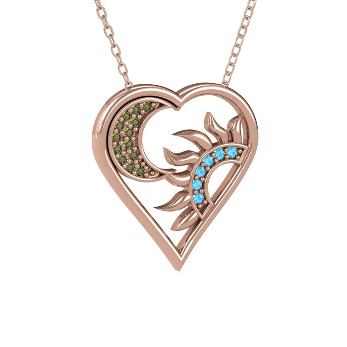 Peridot ve akuamarin 8 ayar rose altın kolye (40 cm rose altın rolo zincir)
