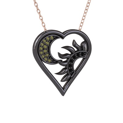 Peridot ve siyah zirkon 925 ayar siyah rodyum kaplama gümüş kolye (40 cm rose altın rolo zincir)