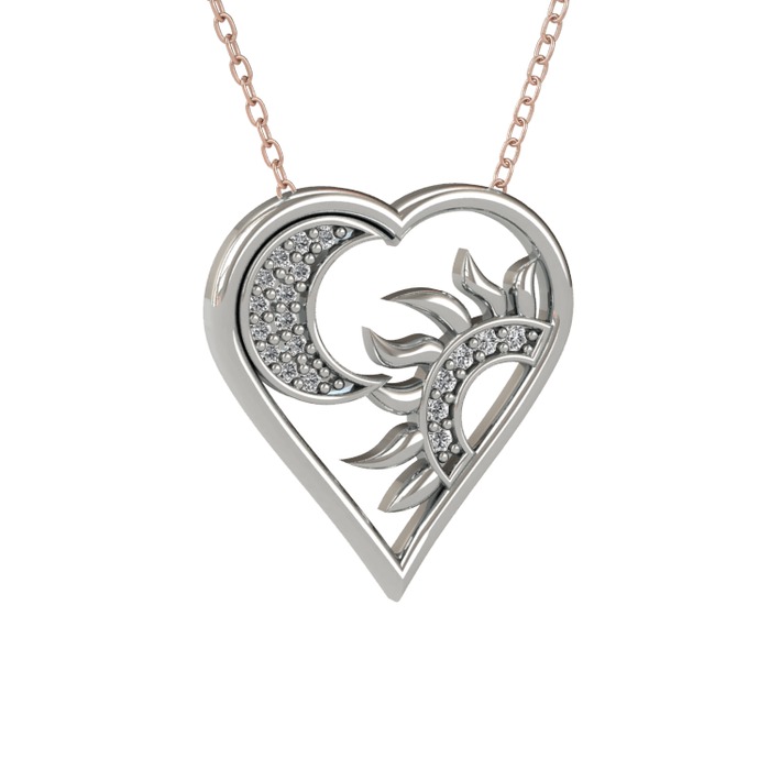 Ay ve Güneş Kalp Kolye - Swarovski 925 ayar gümüş kolye (40 cm gümüş rolo zincir)