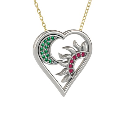 Işığın en büyük hakimi olan Ay ve Güneş’den esinlenerek tasarladığımız Ay ve Güneş Kalp Kolye ile sıradanlıktan uzak etkiniz herkes tarafından fark edilecek. Detaylı Bilgi