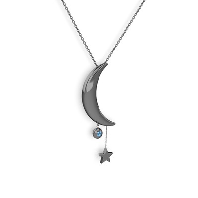Akuamarin 925 ayar siyah rodyum kaplama gümüş kolye (40 cm gümüş rolo zincir)