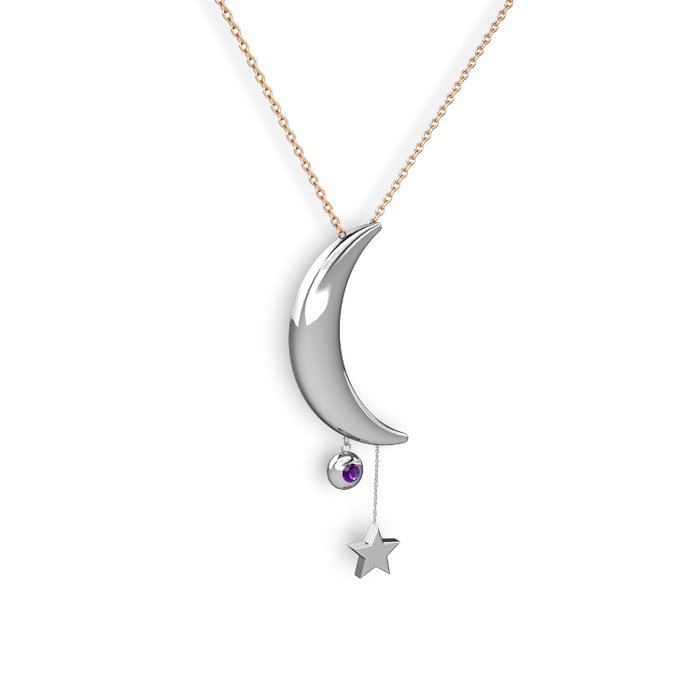Ametist 8 ayar beyaz altın kolye (40 cm rose altın rolo zincir)