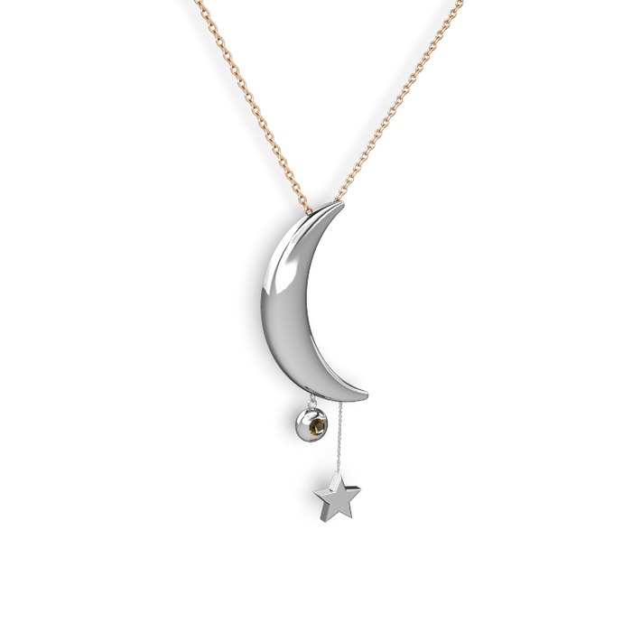 Dumanlı kuvars 8 ayar beyaz altın kolye (40 cm rose altın rolo zincir)