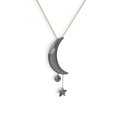 Dumanlı kuvars 925 ayar siyah rodyum kaplama gümüş kolye (40 cm rose altın rolo zincir)