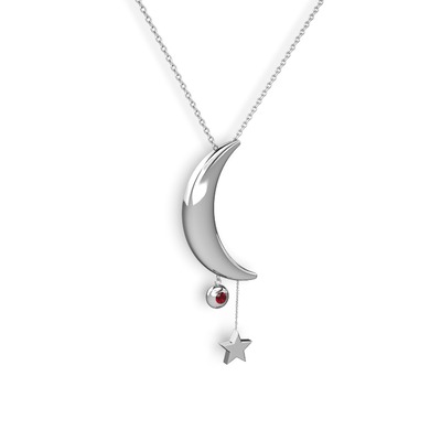 Garnet 8 ayar beyaz altın kolye (40 cm beyaz altın rolo zincir)