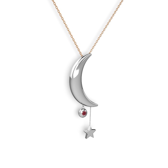 Kök yakut 14 ayar beyaz altın kolye (40 cm gümüş rolo zincir)