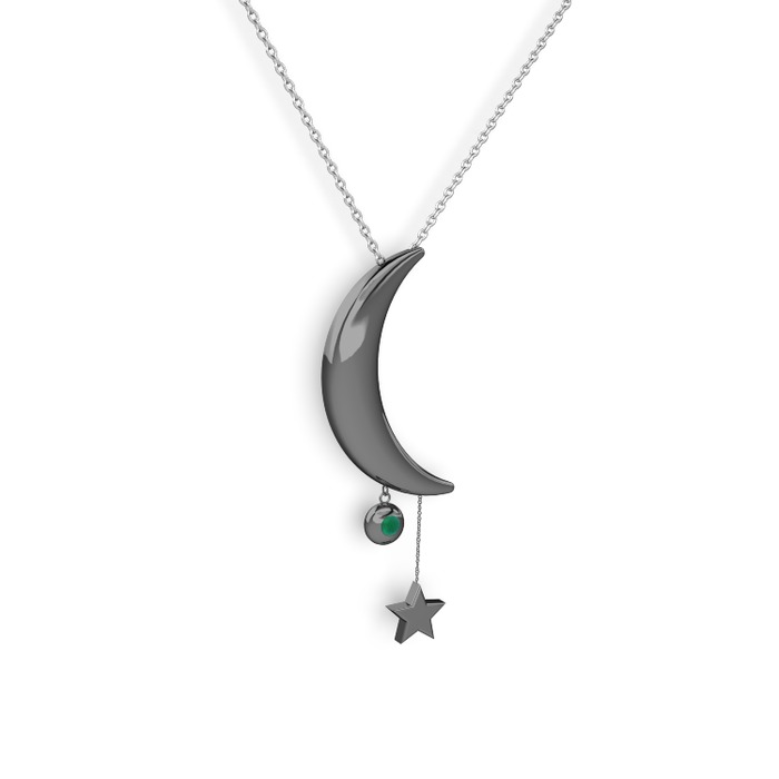 Kök zümrüt 925 ayar siyah rodyum kaplama gümüş kolye (40 cm beyaz altın rolo zincir)