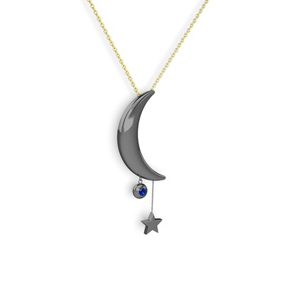 Lab safir 925 ayar siyah rodyum kaplama gümüş kolye (40 cm altın rolo zincir)
