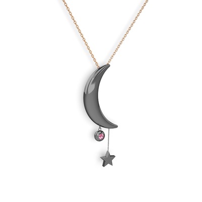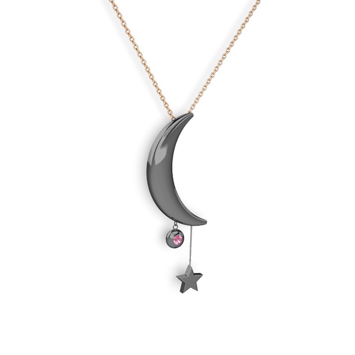 Pembe kuvars 925 ayar siyah rodyum kaplama gümüş kolye (40 cm rose altın rolo zincir)