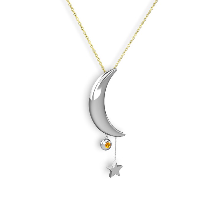 Sitrin 18 ayar beyaz altın kolye (40 cm altın rolo zincir)