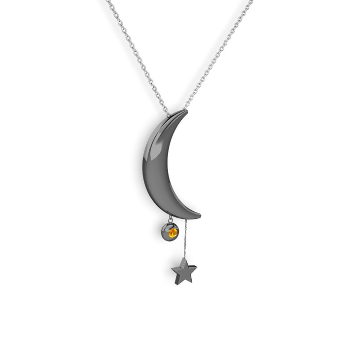 Sitrin 925 ayar siyah rodyum kaplama gümüş kolye (40 cm beyaz altın rolo zincir)