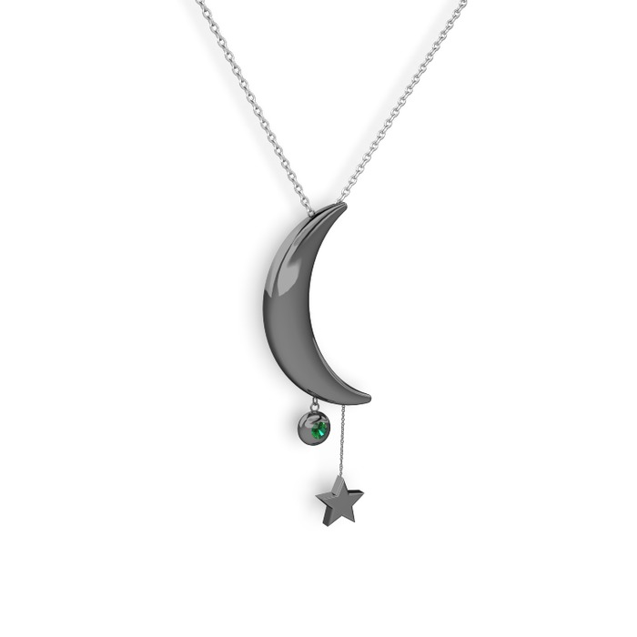 Yeşil kuvars 925 ayar siyah rodyum kaplama gümüş kolye (40 cm beyaz altın rolo zincir)
