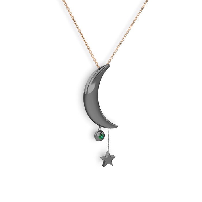 Yeşil kuvars 925 ayar siyah rodyum kaplama gümüş kolye (40 cm rose altın rolo zincir)