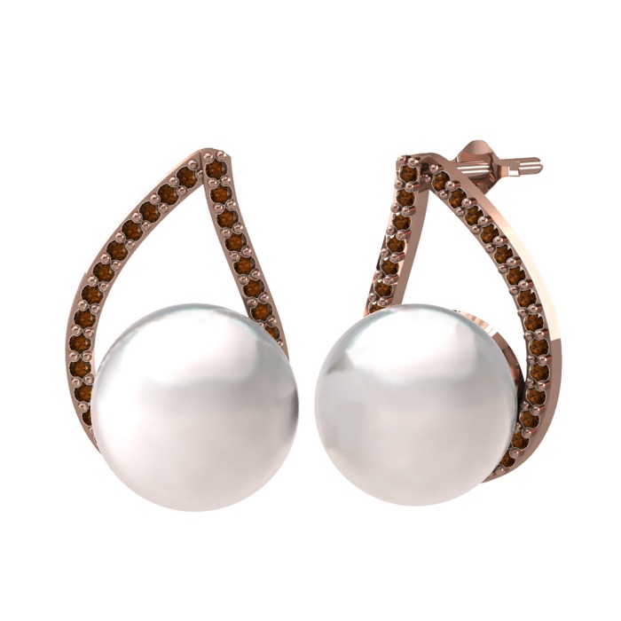 Inci ve dumanlı kuvars 18 ayar rose altın küpe