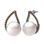 Inci ve dumanlı kuvars 8 ayar beyaz altın küpe