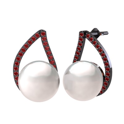 Inci ve garnet 925 ayar siyah rodyum kaplama gümüş küpe