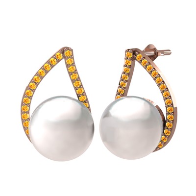 Inci ve sitrin 14 ayar rose altın küpe