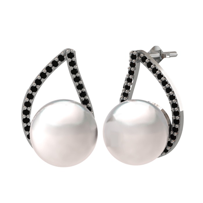 Inci ve siyah zirkon 14 ayar beyaz altın küpe