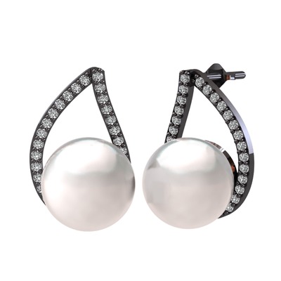 Inci ve swarovski 925 ayar siyah rodyum kaplama gümüş küpe