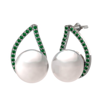 Inci ve yeşil kuvars 8 ayar beyaz altın küpe