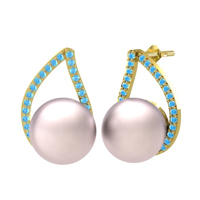 Pembe inci ve akuamarin 18 ayar altın küpe
