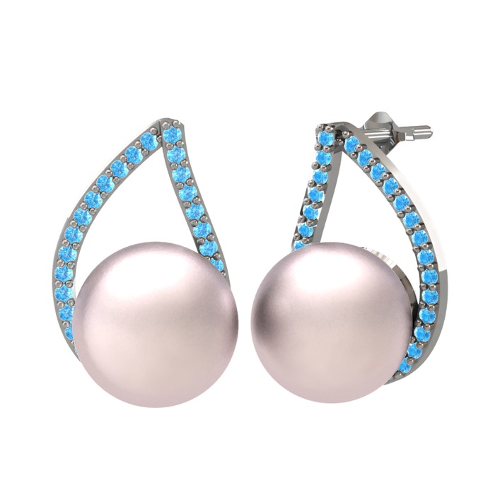 Pembe inci ve akuamarin 18 ayar beyaz altın küpe