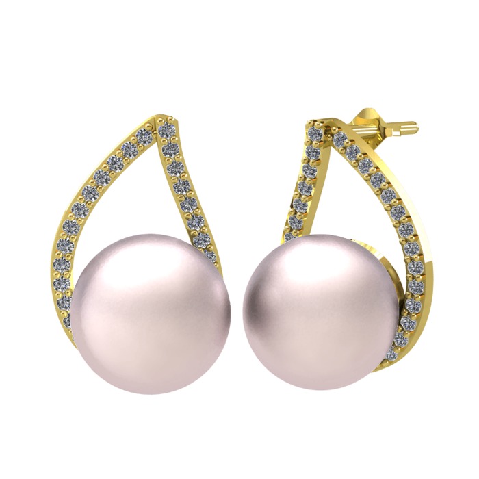 Pembe inci ve pırlanta 18 ayar altın küpe (0.3872 karat)