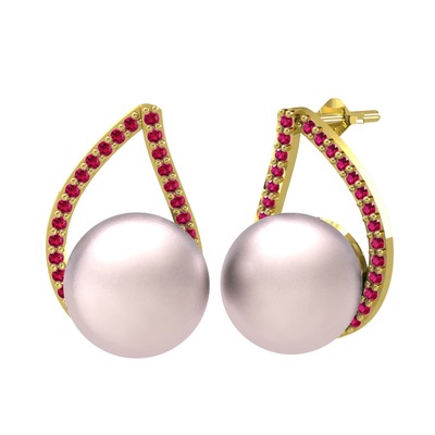 Pembe inci ve rodolit garnet 8 ayar altın küpe