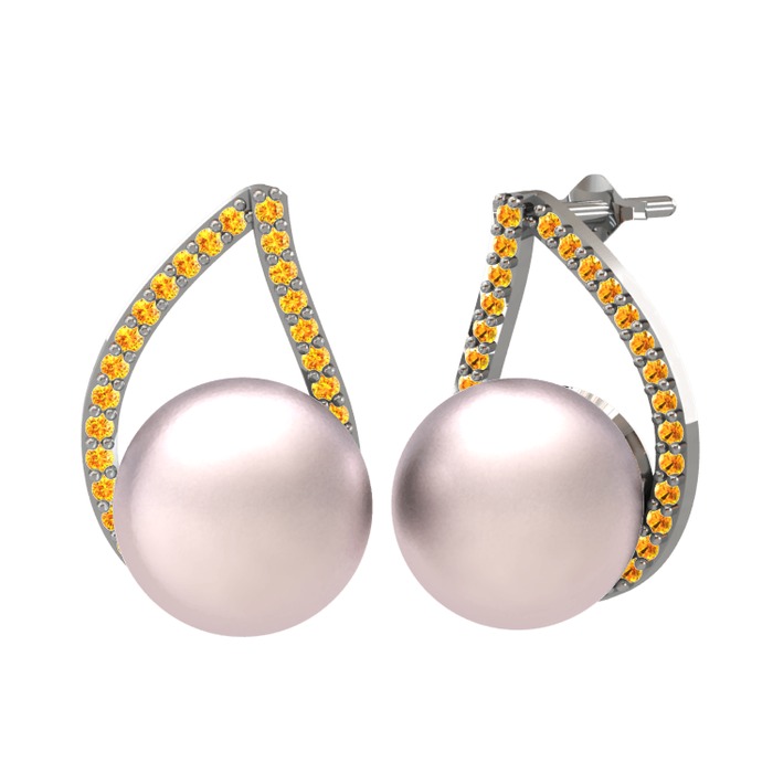Pembe inci ve sitrin 925 ayar gümüş küpe