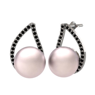 Pembe inci ve siyah zirkon 8 ayar beyaz altın küpe