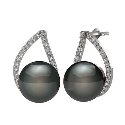 Siyah inci ve beyaz zirkon 18 ayar beyaz altın küpe
