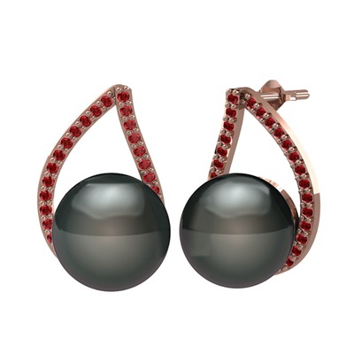 Siyah inci ve garnet 18 ayar rose altın küpe