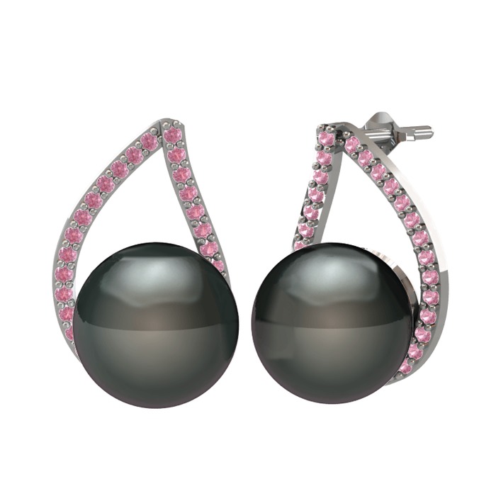 Siyah inci ve pembe kuvars 925 ayar gümüş küpe