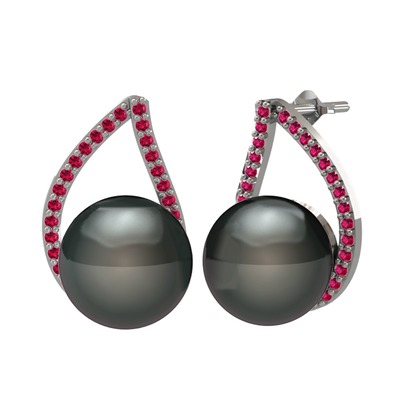 Siyah inci ve rodolit garnet 925 ayar gümüş küpe