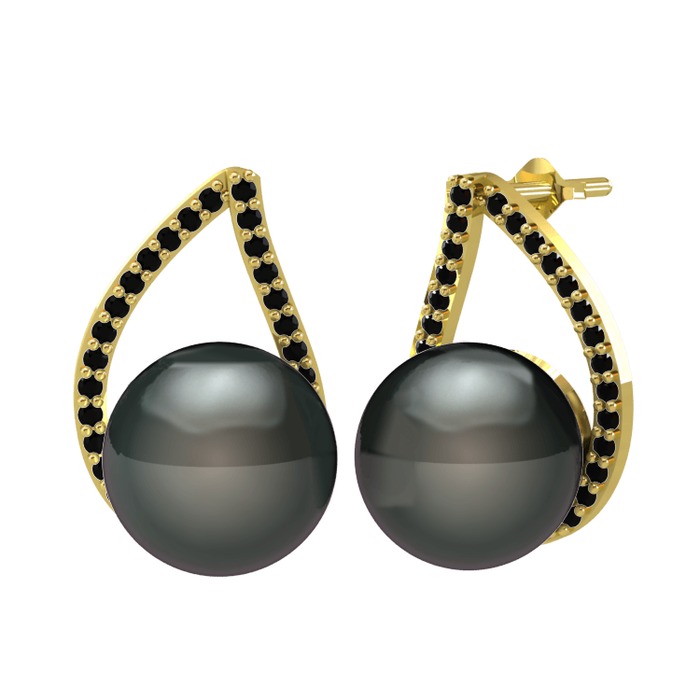 Siyah inci ve siyah zirkon 14 ayar altın küpe
