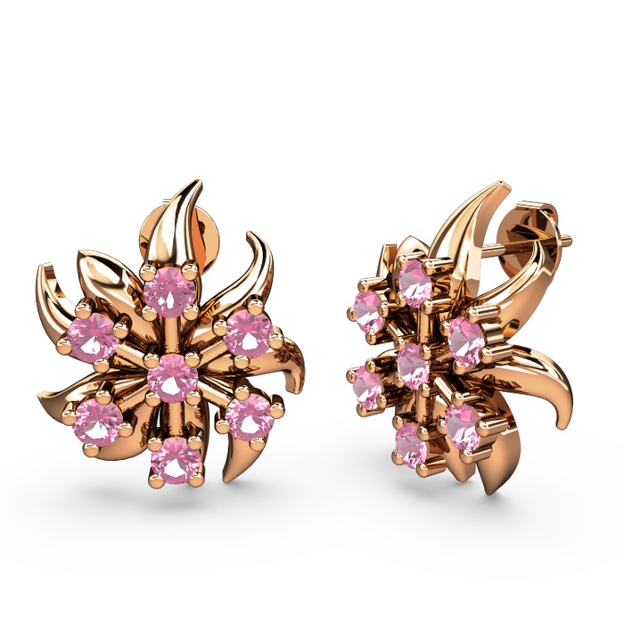 Pembe kuvars 18 ayar rose altın küpe