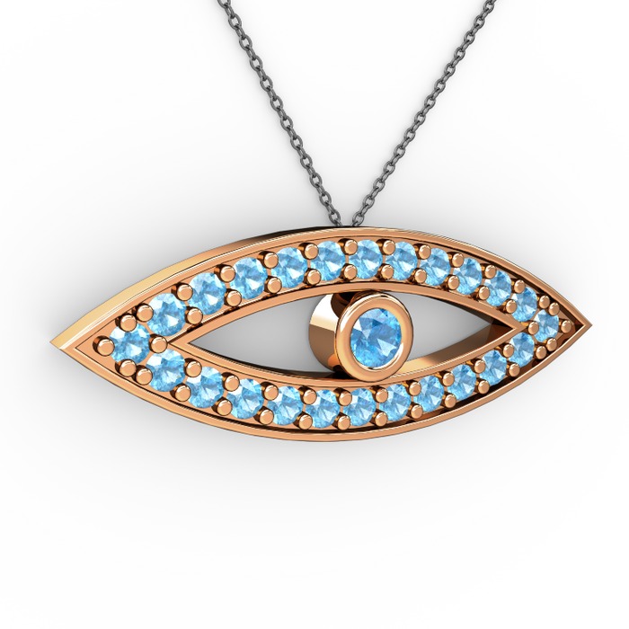 Akuamarin 8 ayar rose altın kolye (40 cm gümüş rolo zincir)