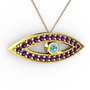 Akuamarin ve ametist 18 ayar altın kolye (40 cm rose altın rolo zincir)